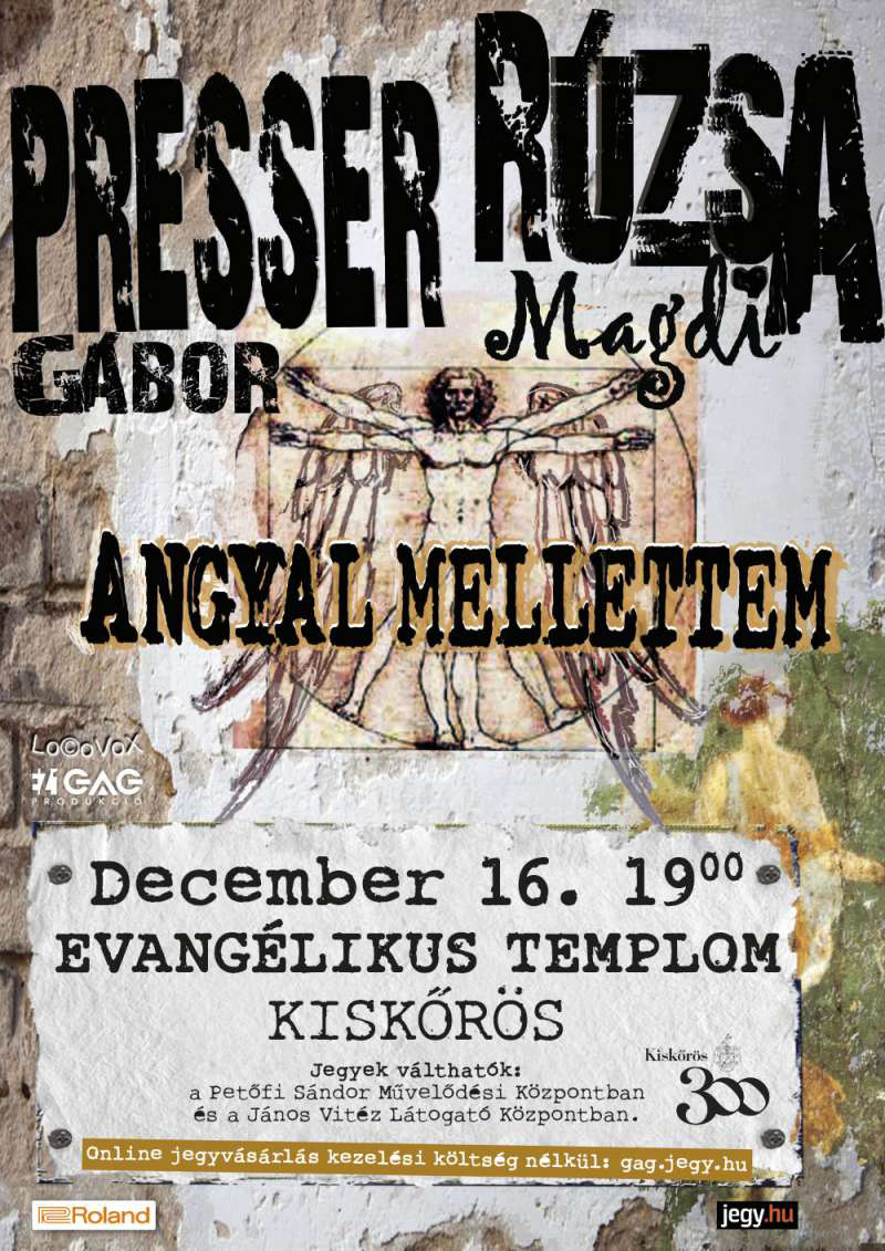 December 16‑án, vasárnap 19 órától Kiskőrösön, az Evangélikus Templomban (Luther tér 3.) koncertezik Presser Gábor és Rúzsa Magdi, Angyal mellettem című közös előadásukkal. A koncertre minden jegy elkelt.
