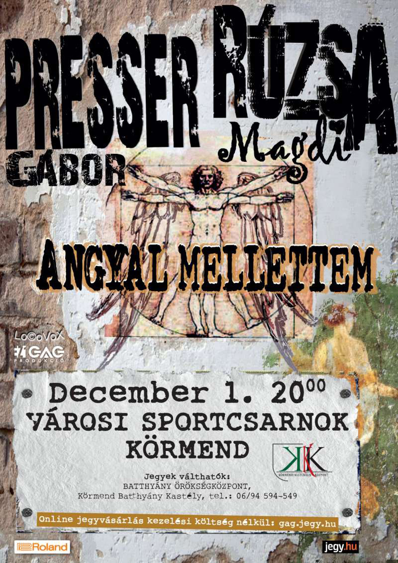 December 1‑jén, szombaton 20 órától Körmenden, a Városi Sportcsarnokban (Kossuth Lajos u. 36.) koncertezik Presser Gábor és Rúzsa Magdi, Angyal mellettem című közös előadásukkal. A koncertre jegyek válthatók a Batthyány Örökségközpontban (Batthyány-kastély, tel.: 94/594549), valamint a Gagmanagement Produkciós és Reklámiroda weblapján.