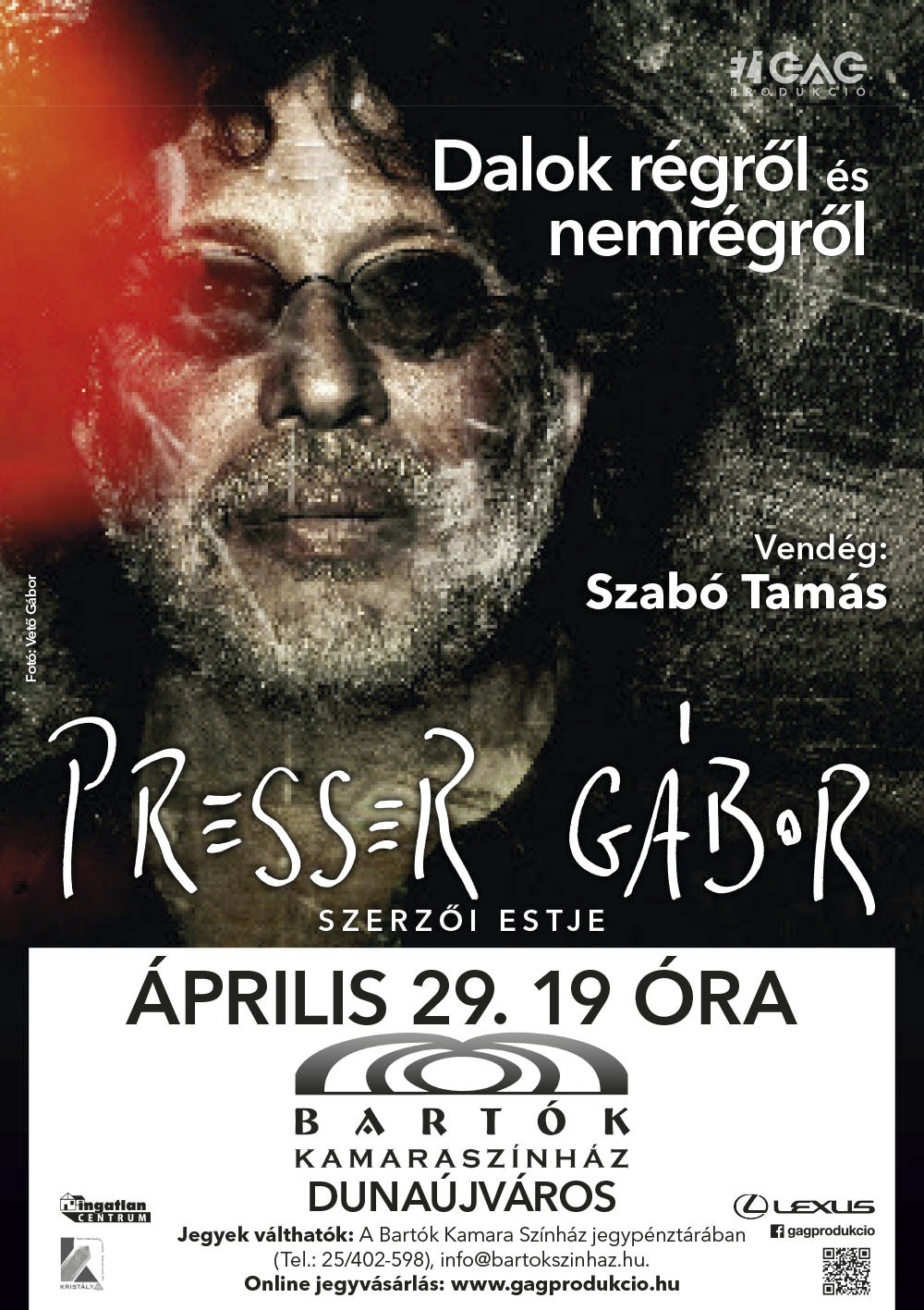 Április 29‑én, szerdán Dunaújvárosban, a Bartók Kamaraszínházban koncertezik Presser Gábor. A Dalok régről és nemrégről című szerzői est vendége Szabó Tamás szájharmonika-művész.
