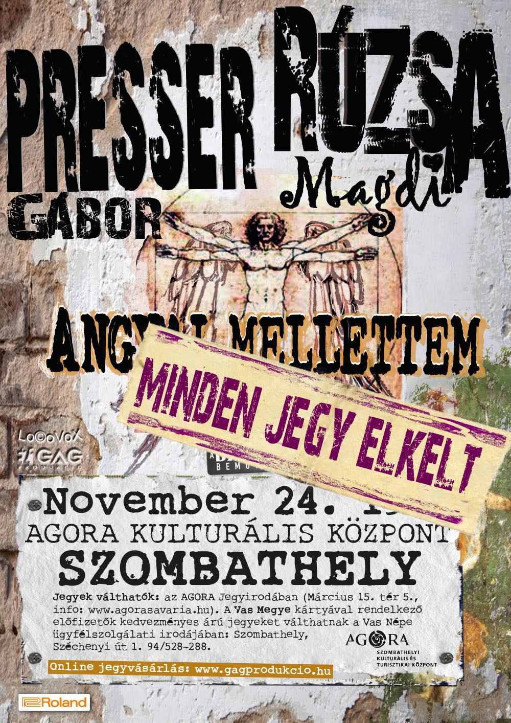 November 24‑én, kedden Szombathelyen, az Agora Kulturális Központban koncertezik Presser Gábor és Rúzsa Magdi, Angyal mellettem című közös előadásukkal. A koncertre minden jegy elkelt.