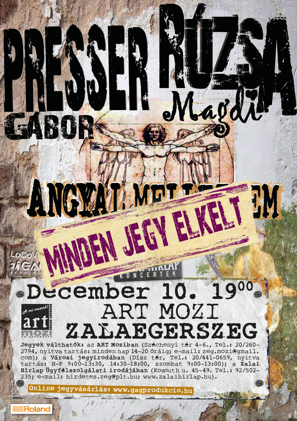 December 10‑én, csütörtökön Zalaegerszegen, az Art Moziban koncertezik Presser Gábor és Rúzsa Magdi, Angyal mellettem című közös előadásukkal. A koncertre minden jegy elkelt.